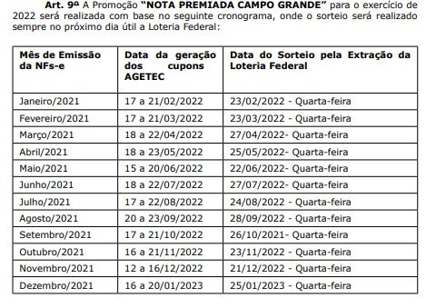 A nota premiada de Campo Grande vai sortear prêmios de R$ 5 a R$ 50 mil entre janeiro e dezembro de 2022. Regulamento do programa foi divulgado nesta terça-feira (1º), no Diogrande (Diário Oficial de Campo Grande).