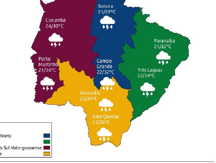 Quinta-feira com previsão de chuva forte e trovoadas em Mato Grosso do Sul
