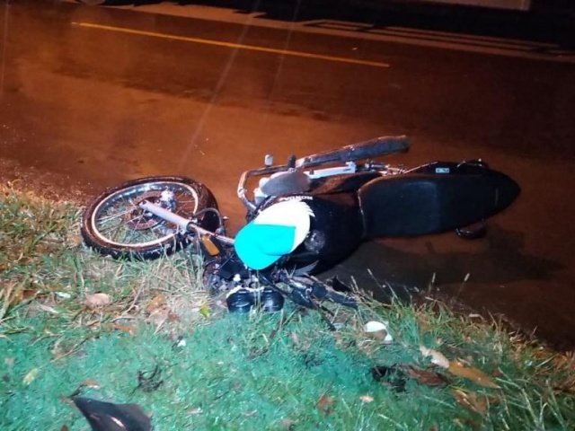 Moto caída em rua onde aconteceu o acidente (Foto: Adilson Domingos)