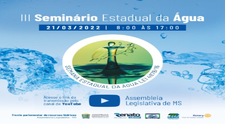 Com o tema “Águas Urbanas e o Zoneamento Ecológico Econômico”, acontece no dia 21 de março, das 8h às 17h, o III Seminário Estadual das Águas. O evento que será realizado em formato híbrido, com mesa presencial e publico online, vai reunir especialistas, educadores, políticos e profissionais da área ambiental.