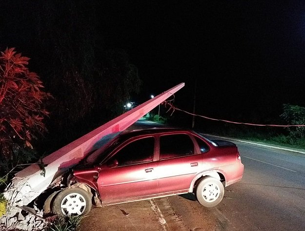 Um veículo Chevrolet Corsa conduzido por uma pessoa do sexo masculino de aproximadamente 60 anos colidiu com um poste de energia. O motorista teria perdido o o controle do veiculo.