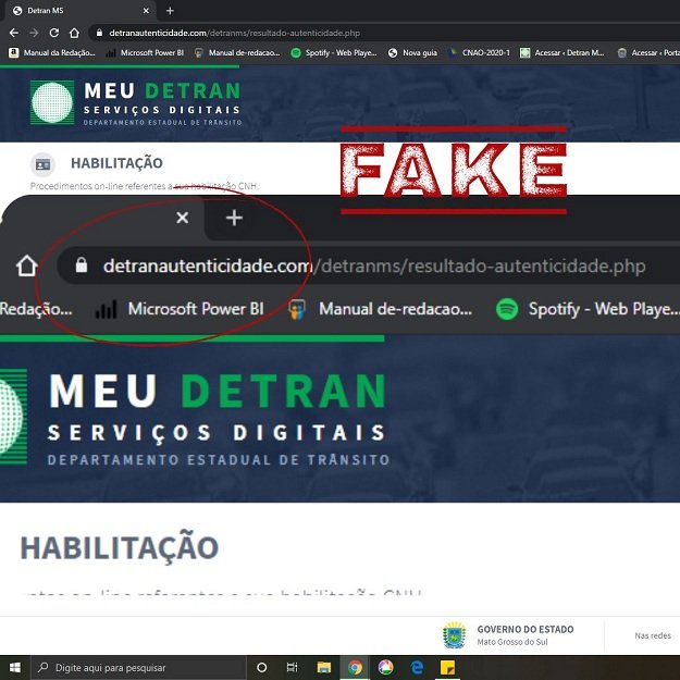 Nesse caso, o endereço utilizado no golpe foi https://detranautenticidade.com/detranms/resultado-autenticidade.php.