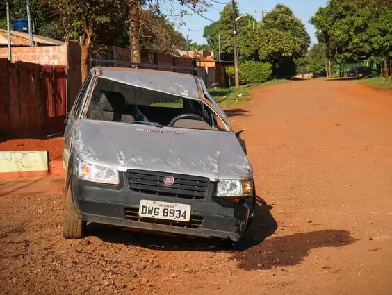 Nesta manhã, o veículo ainda se encontrava no local do acidente, porém, já estava desvirado. Ele está destruído, com teto amassado e vidros quebrados. Vizinhos afirmaram que não viram o acidente.