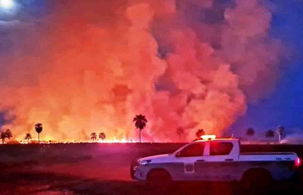 Segundo o CBMMS, desde as 6h da manhã de quarta-feira (25), a guarnição permanece na região combatendo as chamas. Um apoio de militares de Aquidauana foi enviado para ajudar, somando sete homens e brigadistas voluntários das fazendas vizinhas.