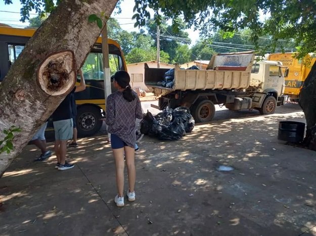 Ao todo, 82 alunos, professores e policiais conseguiram recolher diversos tipos de materiais da margem do rio, como pneus, garrafas pets, latas, sacolas plásticas em grande número, tambores, dentre outros, colocados em sacolas, que encheram um caminhão caçamba.