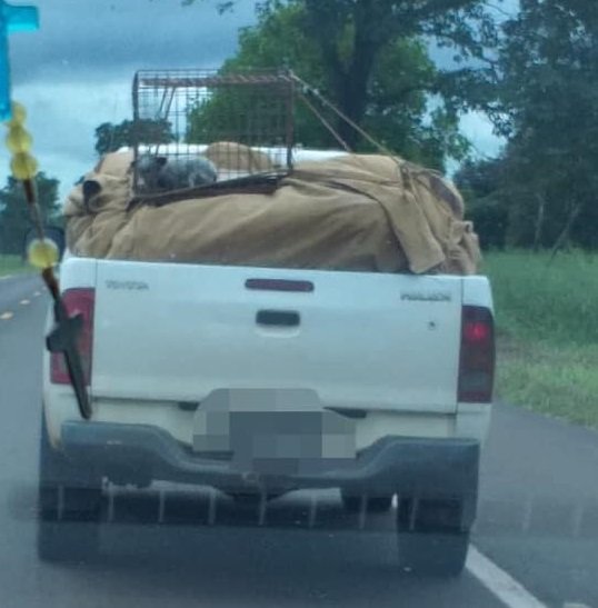 Na rede social uma foto publicada por internauta está gerando inúmeros comentários. Veiculo Hilux de cor branca segundo informações postada que possui placa de Aquidauana foi flagrada na BR 262 em um momento de chuva e frio transportando uma carga coberta por uma lona e em cima, estava uma espécie de gaiola com um filhote de cachorro.