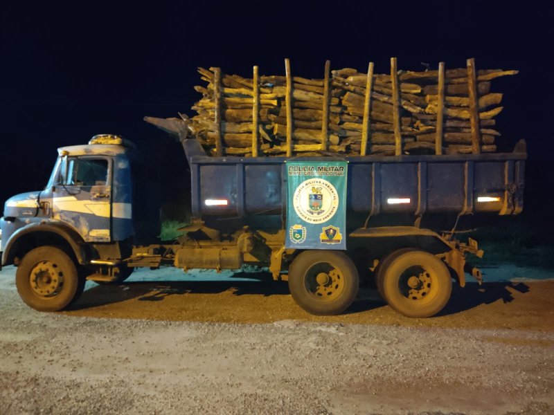 Polícia Militar Ambiental de Miranda apreende caminhão com 19 m³ de madeira ilegal