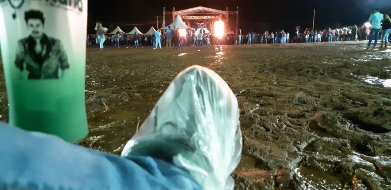 Com o lamaçal do espaço destinado ao show, restou aos fãs improvisarem para não estragarem seus calçados: alguns cobriram-se com sacolas plásticas e outros foram de bota de borracha mesmo. Mas uma parcela significativa preferiu curtir de qualquer maneira, sem se importar com o barro.