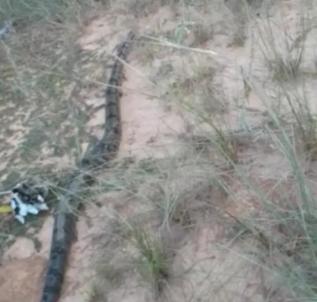 Os Policiais Militares Ambientais foram ao local rapidamente e verificaram tratar-se de uma serpente da espécie Boa constrictor (jiboia) com aproximadamente 2,5 metros de comprimento.