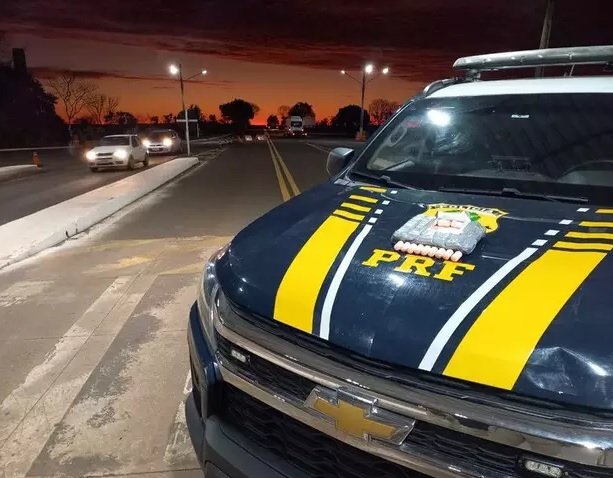 De acordo com a PRF, foi feita vistoria pessoal e localizado um pacote contendo diversas cápsulas de cocaína armazenado nas costas dele, debaixo da roupa.