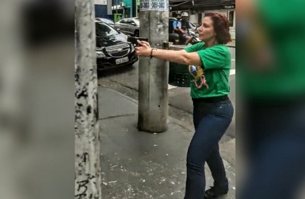 Carla Zambelli aponta arma contra homem; segurança é preso por disparo