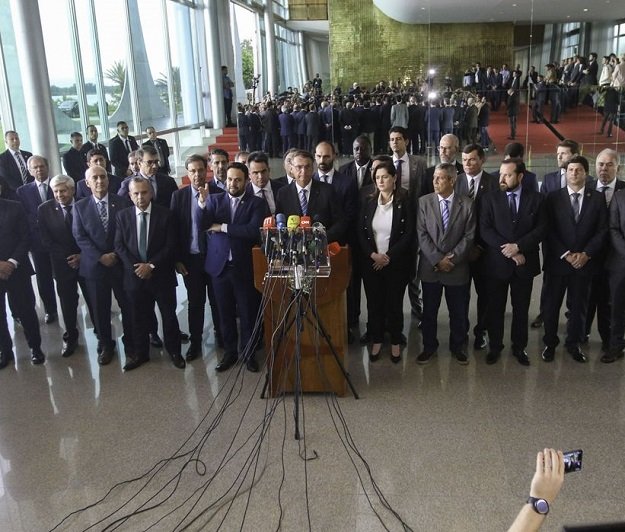 Bolsonaro também afirmou que vai cumprir a Constituição Federal e mencionou sua condição de líder de milhões de brasileiros. "Enquanto presidente da República e cidadão, continuarei cumprindo todos os mandamentos da nossa Constituição. É uma honra ser o líder de milhões de brasileiros que, como eu, defendem a liberdade econômica, a liberdade religiosa, a liberdade de opinião, a honestidade e as cores verde e amarela da nossa bandeira".