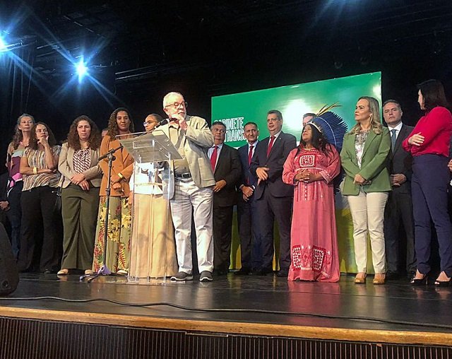 “Quero que vocês façam parte da história política desse país, de um momento em que tivemos essa coragem de assumir o Brasil numa situação extremamente delicada”, afirmou Lula a seus novos ministros, que o acompanharam durante o anúncio.