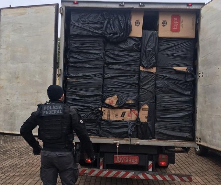 Policia Federal apreende caminhão carregado de cigarros contrabandeados
