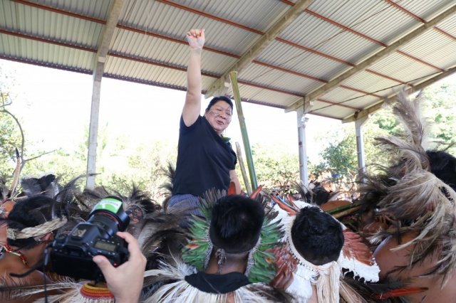De roupa simples e chinelos, ela foi exaltada e elevada ao ar por um grupo de índios Terena após a dança tradicional da etnia na sexta-feira (10), terceiro dia da 13ª Assembleia Terena na aldeia Ipegue, em Aquidauana, a 135 km de Campo Grande. É Joênia Wapichana, primeira deputada federal indígena do Brasil, eleita pela Rede.