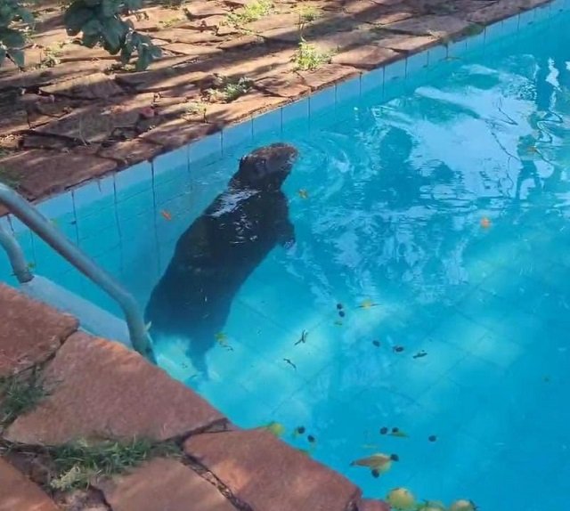 O homem telefonou para a PMA, quando viu a capivara dentro da piscina e o animal não conseguia sair.
