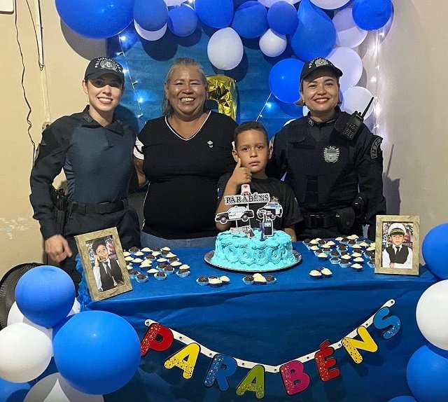 Aos 7 anos, Gabriel é surpreendido pela PM de Aquidauana no aniversário