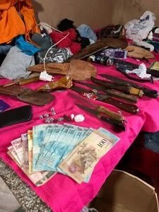 Durante as buscas, além de munição calibre .22 e um simulacro de arma de fogo, a equipe de investigação encontrou 16 trouxinhas de “crack”, 12g de cocaína e vultuosa quantia em dinheiro, em evidente contexto de traficância, crime pelo qual o investigado ostenta passagens pretéritas. R.M.E foi preso em flagrante delito pela equipe policial, por tráfico de drogas e posse irregular de arma de fogo, e conduzido à 1ª Delegacia de Polícia Civil de Jardim.