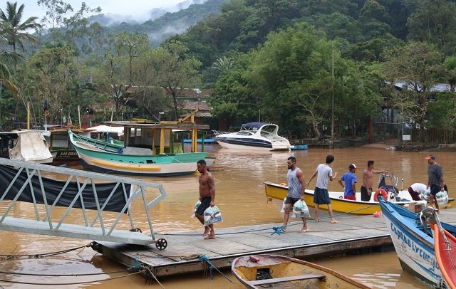 Os pescadores, organizados na associação local, também levam mantimentos para as comunidades que sofreram mais com o desastre. Na cidade, os deslizamentos mataram 43 pessoas e deixaram centenas de desabrigados.