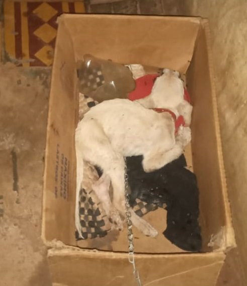 Através de denúncias anônimas, a Polícia civil tomou conhecimento que dois animais, estariam em uma casa abandonada, presos a correntes, sem água ou alimentos inclusive um deles estaria morto dentro de uma caixa de papelão, ainda acorrentado.