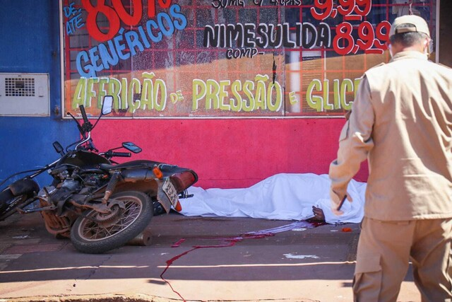 Entregador de farmácia, de 27 anos, foi morto a tiros, na manhã desta segunda-feira (6), na Avenida Rachel de Queiroz, esquina com a Rua Berta Lúcia, no Bairro Aero Rancho, em Campo Grande. Foram feitos, ao menos, 14 tiros contra a cabeça da vítima.