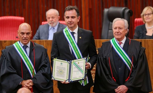 Moraes disse que o presidente do Senado é “um dos grandes defensores do Estado Democrático de Direito”. “Pacheco realiza atividade político-partidária sem ódio, discriminação, sem violência. Ele é um agregador, pessoa com paciência para discutir questões politicas e intransigente em relação aos pilares da democracia”, declarou.
