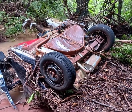 Tudo indica que ao passar por um local onde uma ponte teria sido levada pelas águas ou estaria encoberta o condutor foi surpreendido pela enxurrada.