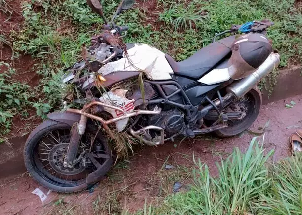 Moto caída em canaleta após colisão no Paraná. (Foto: Portal Catve)