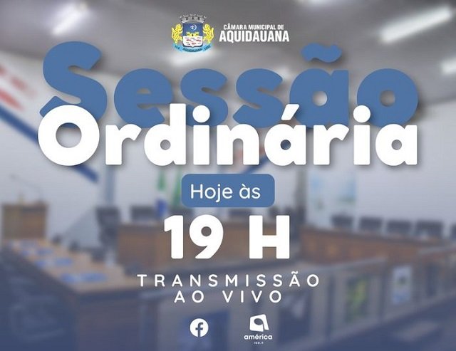 A Sessão Legislativa ocorre hoje, terça-feira a partir das 19 horas com transmissão exclusiva pela rede social do Poder Legislativo de Aquidauana e pela ondas da América FM 100,9.