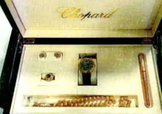 Outro presente do governo saudita, dado em 2021, um estojo com um relógio, uma caneta, abotoaduras, um anel e um tipo de rosário, da marca suíça de diamantes Chopard, avaliados em R$ 500 mil, também foram desenvolvidas hoje em uma agência da Caixa Econômica Federal, em Brasília.