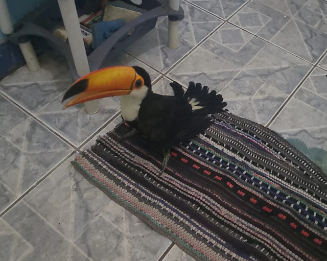 Uma ave da espécie Ramphastos toco, conhecida como tucano foi capturada ontem (26) no final da tarde, por Policiais Militares Ambientais de Corumbá.