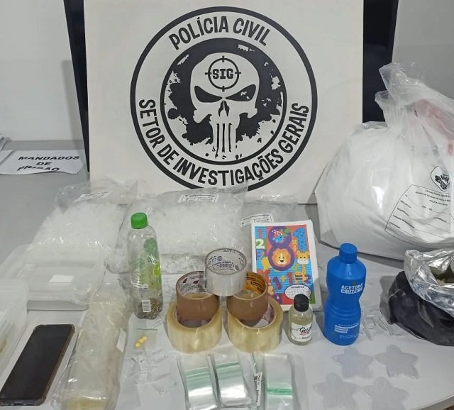 Durante o cumprimento da ordem judicial de prisão, a equipe se deparou com um verdadeiro laboratório de produção e refino de drogas.
