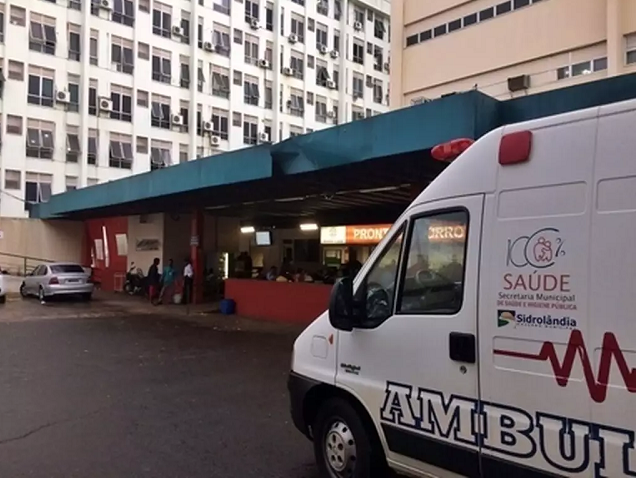 Ambulância que socorreu homem na noite deste domingo. (Foto: Sidrolândia News)
