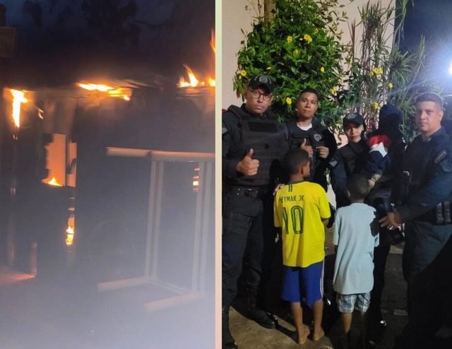 De pronto as guarnições adentraram o quintal e verificaram que ali dentro do imóvel em chamas havia pessoas e escutaram gritos de crianças e choro.