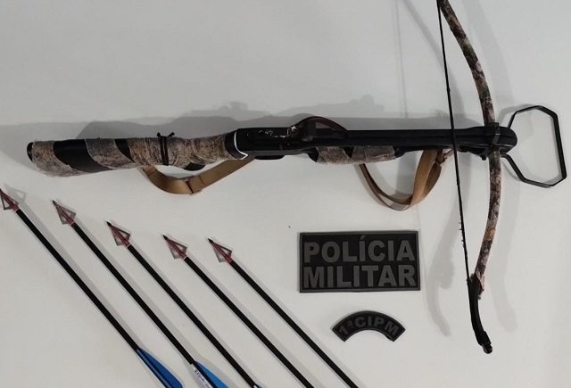 De posse das informações, policiais militares imediatamente foram ao local e durante buscas pelos imóveis e imediações localizaram um instrumento denominado “balestra”, com 5 flechas em posse de um homem de 43 anos, vizinho da vítima. Ainda, no interior da residência da vítima, foi encontrada uma flecha que possivelmente havia sido arremessada em data anterior.