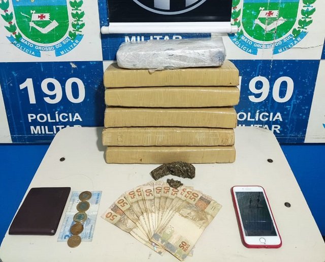 Dentro da mochila do homem de 21 anos foi encontrado 6 tabletes de maconha, totalizando 6,5kg de entorpecente. Durante a abordagem policial o homem de 21 anos, no intuito de ludibriar os policiais, informou um nome falso mas logo assumiu o verdadeiro, informando, ainda, que estava evadido do Sistema Prisional de Campo Grande.