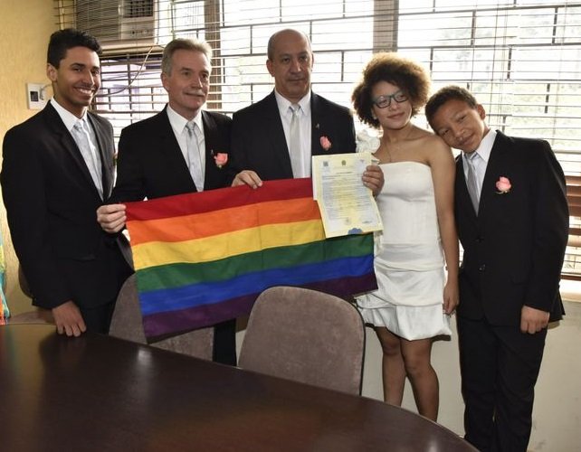 “Aparecíamos nas paradas LGBTI+ vestidos iguais de smoking, de noivos, para chamar a atenção pelo direito ao matrimônio igualitário. Mas além do significado político, o registro da união estável proporcionou uma segurança jurídica que nós não tínhamos antes como casal. Cansei de conhecer histórias de famílias que queriam tomar os bens do parceiro do filho, quando este faleceu. Também possibilitou que pudéssemos finalmente realizar o sonho de adotar filhos e ser pais”, explica David.