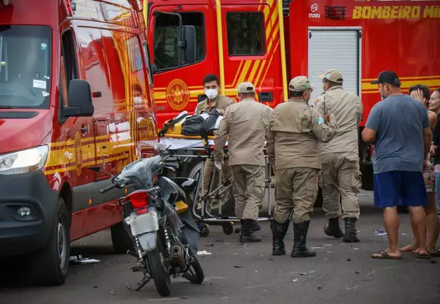 Bombeiro civil bate carro em moto e mulher é socorrida com ferimentos graves