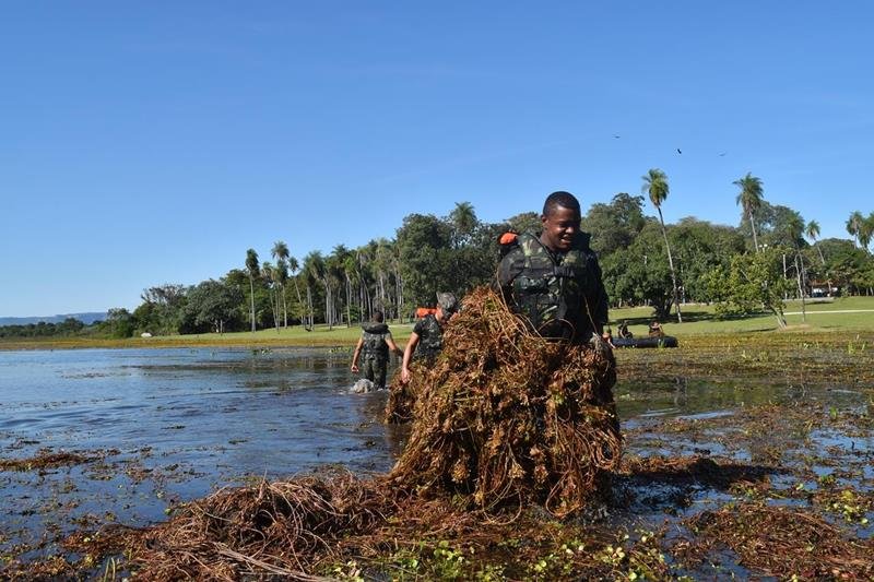 Parceria com Exercito viabiliza limpeza do espelho d'água da Lagoa em Aquidauana
