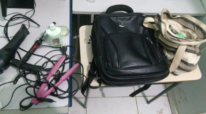Em seguida, os policiais foram até a residência e lá encontraram diversos produtos de furto, tais como bolsas, produtos de beleza e outros, subtraídos de diversas residências e pontos comerciais de Anastácio.
