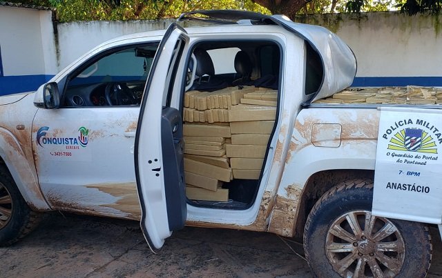 Em uma ocorrência ainda sem maiores detalhes da dinâmica dos fatos a Policia Militar de Anastácio apreendeu um veículo que transportava 1.321 quilos de substância análoga à maconha na estrada de acesso ao Assentamento Monjolinho, zona rural do Município.
