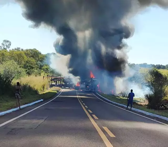 Acidente - Os dois caminhões pegaram fogo depois de colisão frontal, na MS-338, por volta de 12h30. Conforme o major do Corpo de Bombeiros, Bruno Vilela, o acidente ocorreu na altura do km-288, a cinco quilômetros de Santa Rita do Pardo, sentido a cidade de Bataguassu. As causas da colisão serão investigadas.
