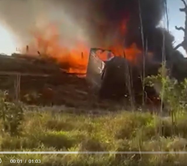 Motorista filmou o momento em que um dos veículos explode. Pela voz, é possível perceber a surpresa diante da cena dramática. O homem também diz que o trecho está em obras. "Caminhão de eucalipto, passa aqui todo dia e não vê que está em obras? Meu Deus do céu. Que cena horrível".