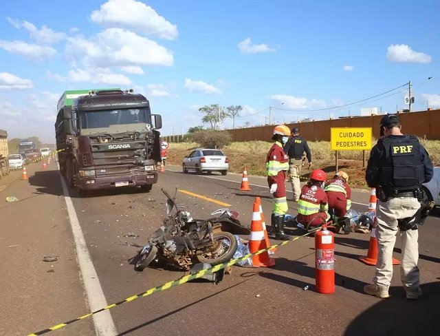 Duas pessoas morreram no início da tarde desta quarta-feira (12) após colisão frontal entre motocicleta e caminhão, na BR-163, saída para Cuiabá, em Campo Grande.