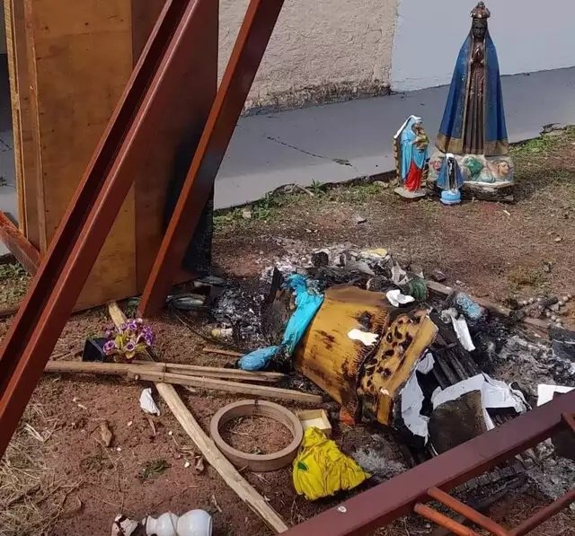 A Igreja Nossa Senhora Aparecida, localizada na BR-163, na saída para São Paulo, em Campo Grande, foi alvo de criminosos na quarta-feira (12). Várias imagens foram furtadas e algumas incendiadas. O caso é investigado pela Polícia Civil.