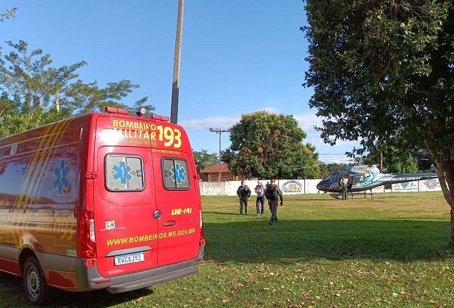 A aeronave pousou nesta manhã no campo de futebol do comando do CPA 3 da Policia Militar no bairro Alto em Aquidauana, oportunidade em que uma equipe do Corpo de Bombeiros aguardava o paciente.