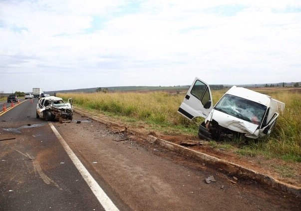 Carro ficou na pista e van foi parar às margens da rodovia após batida frontal