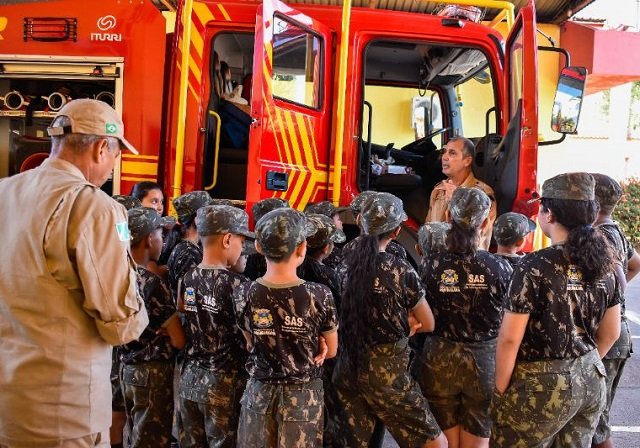 Na manhã de quinta-feira (03), as crianças do Projeto Pelotão Esperança foram até o 1º Subgrupamento do Corpo de Bombeiros de Aquidauana, para conhecer as dependências do quartel.