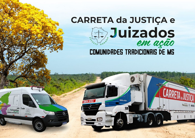 A iniciativa Juizados em Ação nas Comunidades Tradicionais envolve uma van, que leva servidores dos juizados até as comunidades onde vivem indígenas e quilombolas. O veículo ficará estacionado ao lado da Carreta da Justiça no dia 12, na aldeia Limão Verde, e no dia 13 na aldeia Bananal.