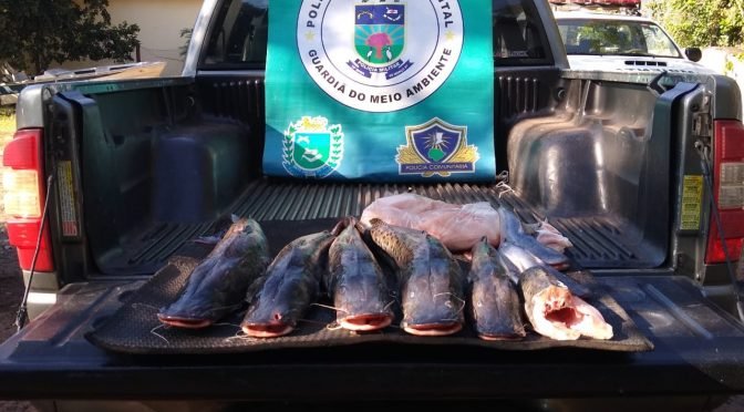 Policiais Militares Ambientais de Aquidauana saiam para fiscalização ambiental ontem (28), quando abordaram um veículo Chevrolet S10, a aproximadamente 1 km do quartel no centro da cidade e, na carroceria, encontraram cinco exemplares de peixe da espécie pintado, medindo 66, 73, 77, 80 e 83, centímetros e, portanto, todos abaixo do tamanho mínimo de captura que é de 90 centímetros para a espécie. Havia ainda três exemplares de peixe da espécie palmito e 3,5 kg de pescado em filé. O pescado, pesando 23 kg e o veículo foram apreendidos.